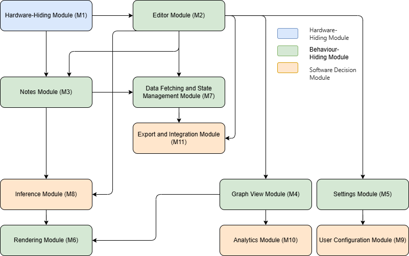 • UC4: The internal event bus and state management system that supports interactive components (notes, suggestions, graph visualizations) is assumed to remain unchanged. Refactoring this mechanism would require re-architecting major parts of the front-end logic and module interfaces.